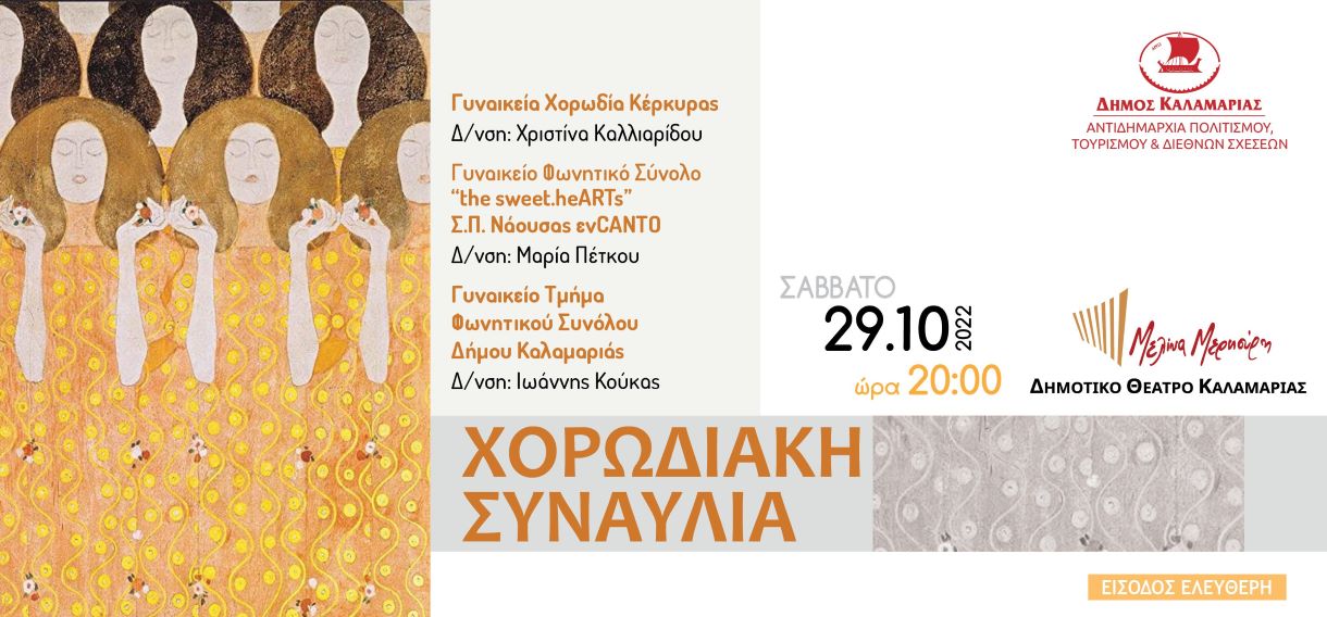 Τρία γυναικεία φωνητικά σύνολα θα έχουν την ευκαιρία ν´ απολαύσουν οι φίλοι της φωνητικής μουσικής το Σάββατο 29/10/22 και ώρα 20.00 στο Δημοτικό Θέατρο «Μελίνα Μερκούρη».