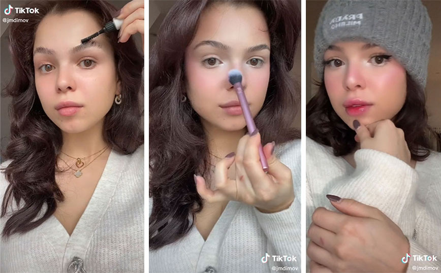 Οι δημιουργοί και οι καλλιτέχνες του TikTok επιτυγχάνουν την ίδια εμφάνιση με ένα συγκεκριμένο προϊόν μακιγιάζ: «Η τάση αφορά το ρουζ», λέει η makeup artist Kate Synnott. Για να πετύχετε ένα φυσικό ρουζ, η Synnott συνιστά να εφαρμόσετε ένα κρεμώδες ρουζ στα μήλα των μάγουλων και στα ζυγωματικά και να το αναμείξετε προς τα πάνω με ένα πινέλο ή τα δάχτυλά σας. Η καλλιτέχνης μακιγιάζ Melissa Hernandez συνιστά, επίσης, να προσθέσετε ρουζ στην άκρη της μύτης σας και, αν θέλετε πραγματικά να το παρακάνετε, «γύρω από τα χείλη για να δημιουργήσετε την ψευδαίσθηση σκασμένων χειλιών».
