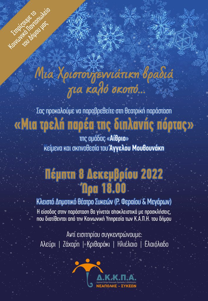 ΚεντρικήΚοινωνικάΘεατρική Βραδιά Για Καλό Σκοπό by xristiana7 Δεκεμβρίου 20227 Δεκεμβρίου 20220369 Share00 7/12/2022
