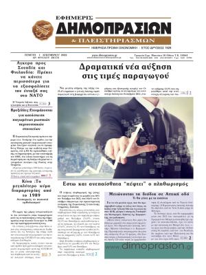 ΚεντρικήΚοινωνικάΠρωτοσέλιδα εφημερίδων by xristiana1 Δεκεμβρίου 20221 Δεκεμβρίου 20220490 Share00 1/12/2022 Πολιτικές ΑΥΓΗ ΔΗΜΟΚΡΑΤΙΑ ΕΛΕΥΘΕΡΗ ΩΡΑ ΕΛΕΥΘΕΡΟΣ ΤΥΠΟΣ ΕΣΤΙΑ ΚΑΘΗΜΕΡΙΝΗ Ο ΛΟΓΟΣ ΡΙΖΟΣΠΑΣΤΗΣ ΤΑ ΝΕΑ ΤΟ ΠΟΝΤΙΚΙ ΤΩΝ ΣΥΝΤΑΚΤΩΝ Οικονομικές ΕΦΗΜΕΡΙΣ ΔΗΜΟΠΡΑΣΙΩΝ ΚΑΙ ΠΛΕΙΣΤΗΡΙΑΣΜΩΝ ΗΧΩ ΔΗΜΟΠΡΑΣΙΩΝ ΝΑΥΤΕΜΠΟΡΙΚΗ Αθλητικές LIVE SPORT SPORTDAY SPORTIME ΠΡΩΤΑΘΛΗΤΗΣ ΦΩΣ ΤΩΝ ΣΠΟΡ ΩΡΑ ΓΙΑ ΣΠΟΡ Lifestyle ESPRESSO Free press ATHENS VOICE Θεσσαλονίκης ΤΥΠΟΣ ΘΕΣ/ΝΙΚΗΣ