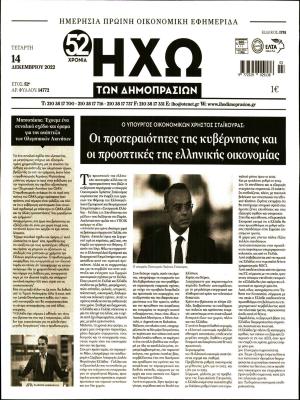 ΚεντρικήΚοινωνικάΠρωτοσέλιδα εφημερίδων by xristiana14 Δεκεμβρίου 202214 Δεκεμβρίου 20220524 Share00 14/12/2022 Πολιτικές ΑΥΓΗ ΔΗΜΟΚΡΑΤΙΑ ΕΛΕΥΘΕΡΗ ΩΡΑ ΕΛΕΥΘΕΡΟΣ ΤΥΠΟΣ ΕΣΤΙΑ ΚΑΘΗΜΕΡΙΝΗ Ο ΛΟΓΟΣ ΡΙΖΟΣΠΑΣΤΗΣ ΤΑ ΝΕΑ ΤΩΝ ΣΥΝΤΑΚΤΩΝ Οικονομικές ΕΦΗΜΕΡΙΣ ΔΗΜΟΠΡΑΣΙΩΝ ΚΑΙ ΠΛΕΙΣΤΗΡΙΑΣΜΩΝ ΗΧΩ ΔΗΜΟΠΡΑΣΙΩΝ ΝΑΥΤΕΜΠΟΡΙΚΗ Αθλητικές LIVE SPORT SPORTDAY SPORTIME ΠΡΩΤΑΘΛΗΤΗΣ ΦΩΣ ΤΩΝ ΣΠΟΡ ΩΡΑ ΓΙΑ ΣΠΟΡ Lifestyle ESPRESSO Θεσσαλονίκης ΤΥΠΟΣ ΘΕΣ/ΝΙΚΗΣ