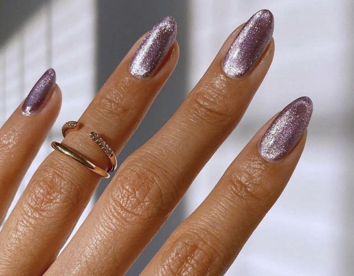 Velvet εφέ στα νύχια λοιπόν με λαμπερό φινίρισμα και λάμψη.Aπλώς θα χρειαστείς ένα cat-eye magnetic velvet gel,βερνίκι και με glitter και έναν πολύ μικρό μαγνήτη.