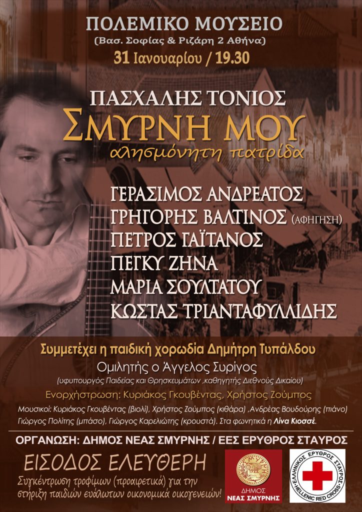 «Ως Έλληνας καλλιτέχνης ένιωσα την ανάγκη για την θλιβερή επέτειο των 100 χρόνων από το 1922,να γράψω ένα μουσικό έργο βασισμένο στην σπουδαία ποίηση μεγάλων ποιητών που αναφέρονται στα στην Μικρασιατική καταστροφή –με έμφαση στη ΣΜΥΡΝΗ.
