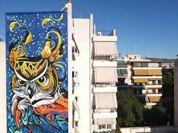 Μία πολύχρωμη σοφή κουκουβάγια, ένα υδάτινο τοπίο σε μπλε και πράσινο, ένα δεντρόσπιτο βγαλμένο από τα παραμύθια κι ένα πανέμορφο πτηνό μέσα σε ζωηρά χρώματα συνθέτουν τις τέσσερις νέες τοιχογραφίες που κοσμούν εδώ και λίγο καιρό ισάριθμα σχολεία της Αθήνας. Και οι τέσσερις εντυπωσιακές δημιουργίες έχουν ως κοινό τους θέμα το περιβάλλον.