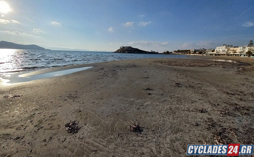 Το φαινόμενο με την πολύ χαμηλή στάθμη της θάλασσας, όπου τα νερά υποχωρούν με αποτέλεσμα να ξεπροβάλλει η στεριά, παρατηρείται τις τελευταίες ημέρες σε νησιά των Κυκλάδων. Χαρακτηριστική είναι η εικόνα από την παραλία του Αγίου Γεωργίου στη Νάξο, με τη θάλασσα να έχει υποχωρήσει αρκετά μέτρα και να προσφέρει ένα ιδιαίτερο θέαμα.