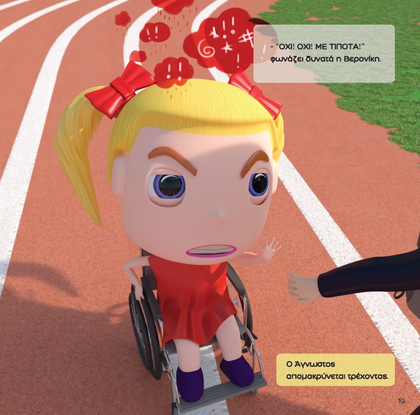 Η Βερονίκη όμως, είναι και το κορίτσι που δέχεται σεξουαλική παρενόχληση από ένα άγνωστο σε αυτήν και τους φίλους της πρόσωπο στο χώρο του αθλητισμού. Γνωρίζοντας ήδη από τους γονείς και τους δασκάλους -μέσα από τις περιπέτειες της Νίκης και του Βίκτωρα- πώς να αναγνωρίζει αυτό που δεν είναι σωστό, εμπιστεύεται στους φίλους της αυτό που της συμβαίνει και βέβαια επιλέγει να απευθυνθεί στο αστυνομικό τμήμα για να πάρει τη βοήθεια που χρειάζεται.