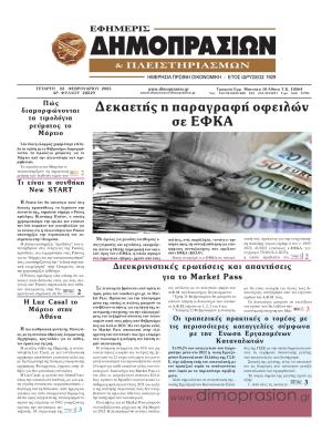 ΚεντρικήΚοινωνικάΠρωτοσέλιδα εφημερίδων by xristiana22 Φεβρουαρίου 202322 Φεβρουαρίου 20230345 Share00 22/2/2023 Πολιτικές ΑΠΟΓΕΥΜΑΤΙΝΗ ΑΥΓΗ ΔΗΜΟΚΡΑΤΙΑ ΕΛΕΥΘΕΡΗ ΩΡΑ ΕΛΕΥΘΕΡΟΣ ΤΥΠΟΣ ΕΣΤΙΑ ΚΑΘΗΜΕΡΙΝΗ Ο ΛΟΓΟΣ ΡΙΖΟΣΠΑΣΤΗΣ ΤΑ ΝΕΑ ΤΩΝ ΣΥΝΤΑΚΤΩΝ Οικονομικές ΕΦΗΜΕΡΙΣ ΔΗΜΟΠΡΑΣΙΩΝ ΚΑΙ ΠΛΕΙΣΤΗΡΙΑΣΜΩΝ ΗΧΩ ΔΗΜΟΠΡΑΣΙΩΝ ΝΑΥΤΕΜΠΟΡΙΚΗ Αθλητικές LIVE SPORT SPORTDAY SPORTIME ΠΡΩΤΑΘΛΗΤΗΣ ΦΩΣ ΤΩΝ ΣΠΟΡ ΩΡΑ ΓΙΑ ΣΠΟΡ Lifestyle ESPRESSO Θεσσαλονίκης ΤΥΠΟΣ ΘΕΣ/ΝΙΚΗΣ
