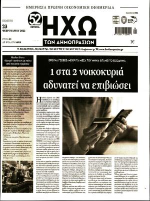 ΚεντρικήΚοινωνικάΠρωτοσέλιδα εφημερίδων by xristiana23 Φεβρουαρίου 202323 Φεβρουαρίου 20230334 Share00 23/2/2023 Πολιτικές ΑΠΟΓΕΥΜΑΤΙΝΗ ΑΥΓΗ ΔΗΜΟΚΡΑΤΙΑ ΕΛΕΥΘΕΡΗ ΩΡΑ ΕΛΕΥΘΕΡΟΣ ΤΥΠΟΣ ΕΣΤΙΑ ΚΑΘΗΜΕΡΙΝΗ Ο ΛΟΓΟΣ ΡΙΖΟΣΠΑΣΤΗΣ ΤΑ ΝΕΑ ΤΟ ΠΟΝΤΙΚΙ ΤΩΝ ΣΥΝΤΑΚΤΩΝ Οικονομικές DEAL NEWS ΕΦΗΜΕΡΙΣ ΔΗΜΟΠΡΑΣΙΩΝ ΚΑΙ ΠΛΕΙΣΤΗΡΙΑΣΜΩΝ ΗΧΩ ΔΗΜΟΠΡΑΣΙΩΝ ΝΑΥΤΕΜΠΟΡΙΚΗ Αθλητικές LIVE SPORT SPORTDAY SPORTIME ΠΡΩΤΑΘΛΗΤΗΣ ΦΩΣ ΤΩΝ ΣΠΟΡ ΩΡΑ ΓΙΑ ΣΠΟΡ Lifestyle ESPRESSO Free press ATHENS VOICE Θεσσαλονίκης ΤΥΠΟΣ ΘΕΣ/ΝΙΚΗΣ