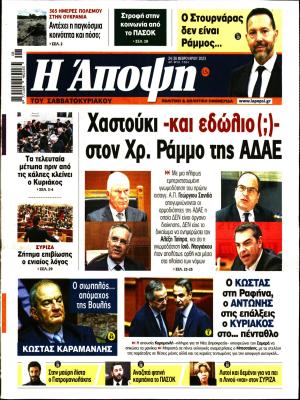 ΚεντρικήΚοινωνικάΠρωτοσέλιδα εφημερίδων by xristiana24 Φεβρουαρίου 202324 Φεβρουαρίου 20230356 Share00 24/2/2023 Πολιτικές ΑΠΟΓΕΥΜΑΤΙΝΗ ΑΠΟΨΗ ΑΥΓΗ ΒΡΑΔΥΝΗ ΔΗΜΟΚΡΑΤΙΑ ΕΛΕΥΘΕΡΗ ΩΡΑ ΕΛΕΥΘΕΡΟΣ ΤΥΠΟΣ ΕΣΤΙΑ ΚΑΘΗΜΕΡΙΝΗ ΚΑΡΦΙ Ο ΛΟΓΟΣ ΠΑΡΑΠΟΛΙΤΙΚΑ ΡΙΖΟΣΠΑΣΤΗΣ ΤΑ ΝΕΑ ΤΩΝ ΣΥΝΤΑΚΤΩΝ Οικονομικές ΕΦΗΜΕΡΙΣ ΔΗΜΟΠΡΑΣΙΩΝ ΚΑΙ ΠΛΕΙΣΤΗΡΙΑΣΜΩΝ ΗΧΩ ΔΗΜΟΠΡΑΣΙΩΝ ΚΕΦΑΛΑΙΟ ΜΕΤΟΧΟΣ ΝΑΥΤΕΜΠΟΡΙΚΗ Αθλητικές LIVE SPORT SPORTDAY SPORTIME ΠΡΩΤΑΘΛΗΤΗΣ ΤΟ ΣΤΟΙΧΗΜΑ ΦΩΣ ΤΩΝ ΣΠΟΡ ΩΡΑ ΓΙΑ ΣΠΟΡ Lifestyle ESPRESSO Θεσσαλονίκης ΤΥΠΟΣ ΘΕΣ/ΝΙΚΗΣ