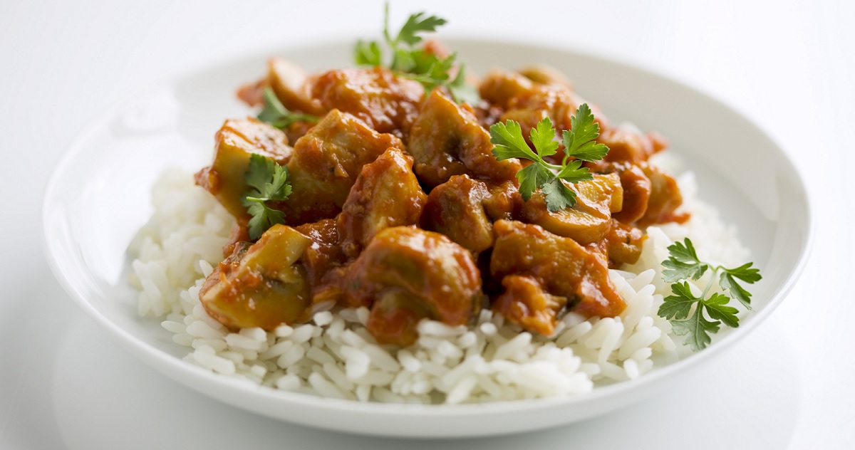 - Ρίχνετε μισό με ένα φλιτζάνι νερό και αφήνετε το φαγητό να σιγοβράσει μέχρι να απορροφηθούν τα υγρά και να μείνει με τη σάλτσα του. Προσθέτε το μαϊντανό και σερβίρετε με ρύζι που ετοιμάζετε σύμφωνα με τις οδηγίες της συσκευασίας του.