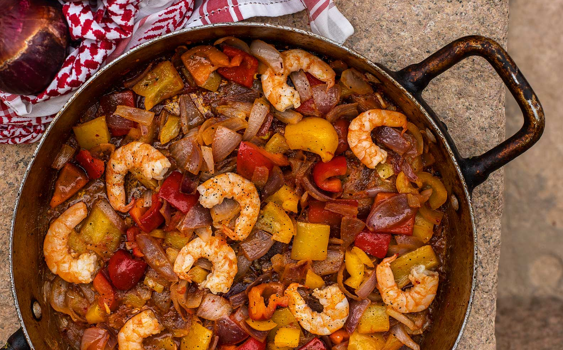 - Ανακατεύετε αυξάνετε τη φωτιά σε δυνατή και μαγειρεύετε τα λαχανικά για 2-3 λ για να έχουν μια ελαφρώς τραγανή υφή. Μετά προσθέτετε τις γαρίδες και συνεχίζετε το μαγείρεμα μόνο για 2 λ, γυρίζοντάς τες 1-2 φορές. Σερβίρετε το σαγανάκι σας αμέσως και καλή σας όρεξη!