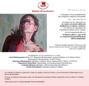 Όπως αρμόζει στο κλίμα των ημερών ο Δήμος Καλαμαριάς ετοίμασε για την Τετάρτη 15 Μαρτίου και ώρα 19.00, στο χώρο του Δημοτικού Θεάτρου Μελίνα Μερκούρη, μία λιτή βραδιά, μη λησμονώντας το σπουδαίο συμβολισμό της επετείου της 8ης Μαρτίου.
