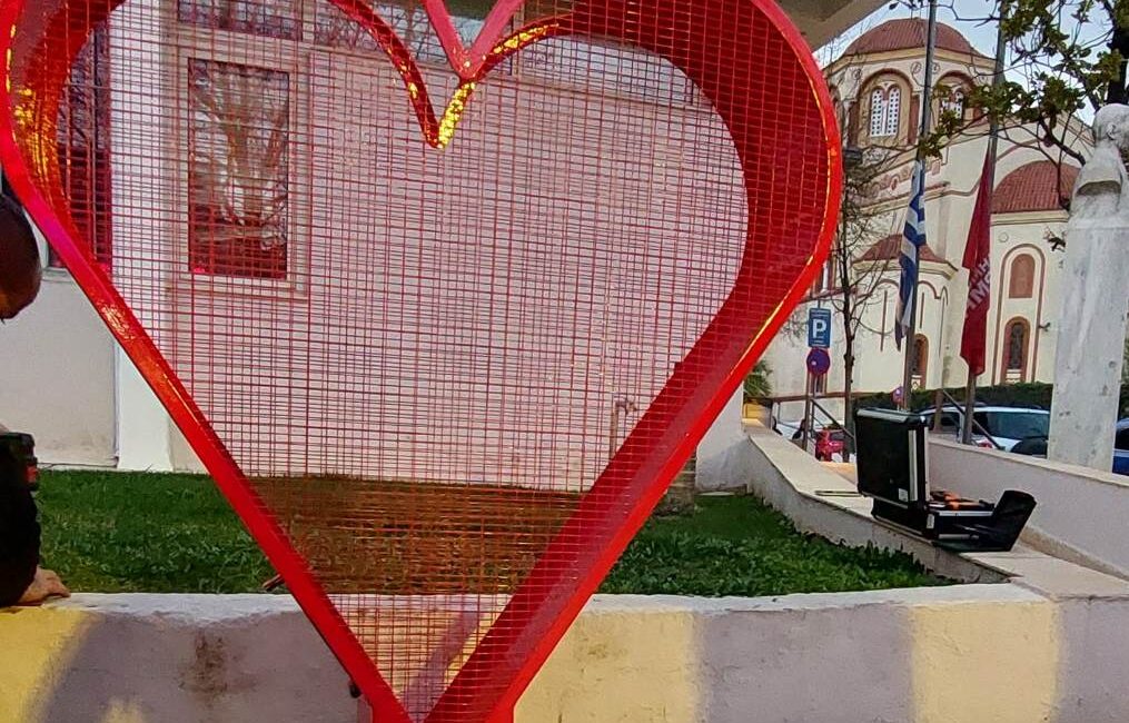 Οι δύο μεταλλικές καρδιές είναι δωρεά του ΚΑΠΗ Θέρμης και ενός δημότη ο οποίος επιθυμεί να διατηρήσει την ανωνυμία του.