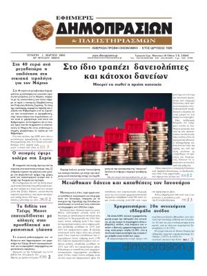 ΚεντρικήΚοινωνικάΠρωτοσέλιδα εφημερίδων by xristiana1 Μαρτίου 20231 Μαρτίου 20230351 Share00 1/3/2023 Πολιτικές ΑΠΟΓΕΥΜΑΤΙΝΗ ΑΥΓΗ ΔΗΜΟΚΡΑΤΙΑ ΕΛΕΥΘΕΡΗ ΩΡΑ ΕΛΕΥΘΕΡΟΣ ΤΥΠΟΣ ΕΣΤΙΑ ΚΑΘΗΜΕΡΙΝΗ Ο ΛΟΓΟΣ ΡΙΖΟΣΠΑΣΤΗΣ ΤΑ ΝΕΑ ΤΩΝ ΣΥΝΤΑΚΤΩΝ Οικονομικές ΕΦΗΜΕΡΙΣ ΔΗΜΟΠΡΑΣΙΩΝ ΚΑΙ ΠΛΕΙΣΤΗΡΙΑΣΜΩΝ ΗΧΩ ΔΗΜΟΠΡΑΣΙΩΝ ΝΑΥΤΕΜΠΟΡΙΚΗ Αθλητικές LIVE SPORT SPORTDAY SPORTIME ΠΡΩΤΑΘΛΗΤΗΣ ΦΩΣ ΤΩΝ ΣΠΟΡ ΩΡΑ ΓΙΑ ΣΠΟΡ Lifestyle ESPRESSO Θεσσαλονίκης ΤΥΠΟΣ ΘΕΣ/ΝΙΚΗΣ