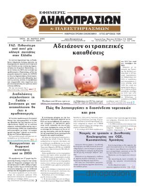 ΚεντρικήΚοινωνικάΠρωτοσέλιδα εφημερίδων by xristiana28 Μαρτίου 202328 Μαρτίου 20230351 Share00 28/3/2023 Πολιτικές ΑΠΟΓΕΥΜΑΤΙΝΗ ΑΥΓΗ ΔΗΜΟΚΡΑΤΙΑ ΕΛΕΥΘΕΡΗ ΩΡΑ ΕΛΕΥΘΕΡΟΣ ΤΥΠΟΣ ΕΣΤΙΑ ΚΑΘΗΜΕΡΙΝΗ Ο ΛΟΓΟΣ ΡΙΖΟΣΠΑΣΤΗΣ ΤΑ ΝΕΑ ΤΩΝ ΣΥΝΤΑΚΤΩΝ Οικονομικές ΕΦΗΜΕΡΙΣ ΔΗΜΟΠΡΑΣΙΩΝ ΚΑΙ ΠΛΕΙΣΤΗΡΙΑΣΜΩΝ ΗΧΩ ΔΗΜΟΠΡΑΣΙΩΝ ΝΑΥΤΕΜΠΟΡΙΚΗ Αθλητικές LIVE SPORT SPORTDAY SPORTIME ΠΡΟΓΝΩΣΠΟΡ ΠΡΩΤΑΘΛΗΤΗΣ ΦΩΣ ΤΩΝ ΣΠΟΡ ΩΡΑ ΓΙΑ ΣΠΟΡ Lifestyle ESPRESSO Θεσσαλονίκης ΤΥΠΟΣ ΘΕΣ/ΝΙΚΗΣ