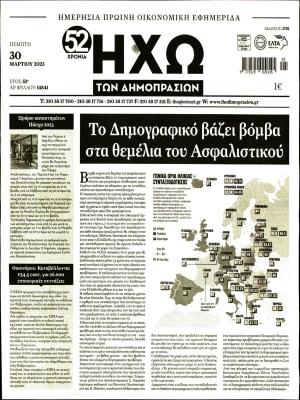 ΚεντρικήΚοινωνικάΠρωτοσέλιδα εφημερίδων by xristiana30 Μαρτίου 202330 Μαρτίου 20230336 Share00 30/3/2023 Πολιτικές ΑΠΟΓΕΥΜΑΤΙΝΗ ΑΥΓΗ ΔΗΜΟΚΡΑΤΙΑ ΕΛΕΥΘΕΡΗ ΩΡΑ ΕΛΕΥΘΕΡΟΣ ΤΥΠΟΣ ΕΣΤΙΑ ΚΑΘΗΜΕΡΙΝΗ Ο ΛΟΓΟΣ ΡΙΖΟΣΠΑΣΤΗΣ ΤΑ ΝΕΑ ΤΟ ΠΟΝΤΙΚΙ ΤΩΝ ΣΥΝΤΑΚΤΩΝ Οικονομικές ΕΦΗΜΕΡΙΣ ΔΗΜΟΠΡΑΣΙΩΝ ΚΑΙ ΠΛΕΙΣΤΗΡΙΑΣΜΩΝ ΗΧΩ ΔΗΜΟΠΡΑΣΙΩΝ ΝΑΥΤΕΜΠΟΡΙΚΗ Αθλητικές LIVE SPORT SPORTDAY SPORTIME ΠΡΩΤΑΘΛΗΤΗΣ ΦΩΣ ΤΩΝ ΣΠΟΡ ΩΡΑ ΓΙΑ ΣΠΟΡ Lifestyle ESPRESSO Free press ATHENS VOICE Θεσσαλονίκης ΤΥΠΟΣ ΘΕΣ/ΝΙΚΗΣ