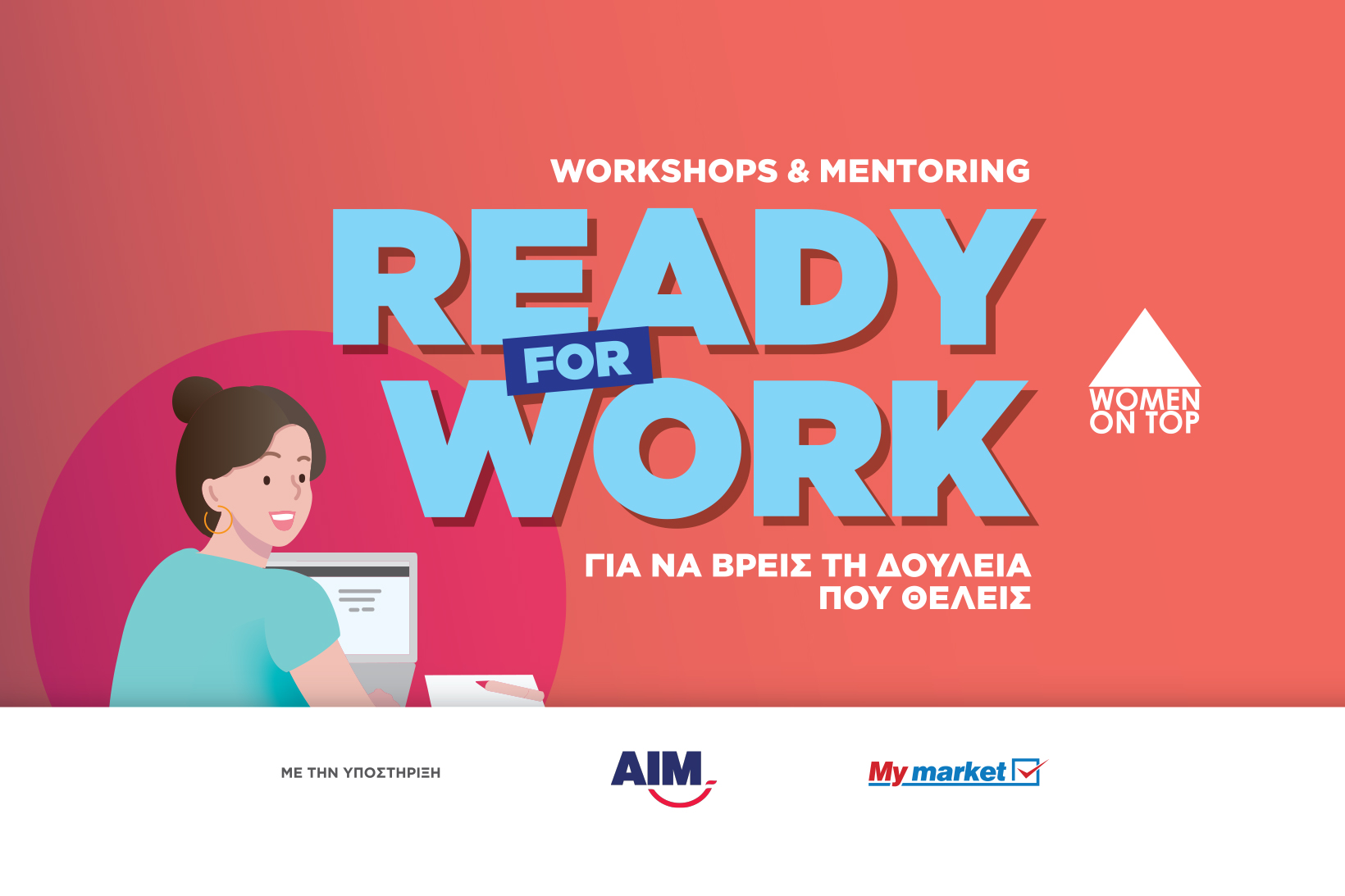 Το Women on Top με την υποστήριξη της AIM και των καταστημάτων My Market, διοργανώνει το Ready for Work, ένα εξειδικευμένο πρόγραμμα επιμόρφωσης και mentoring για την επαγγελματική ενδυνάμωση των νέων γυναικών.