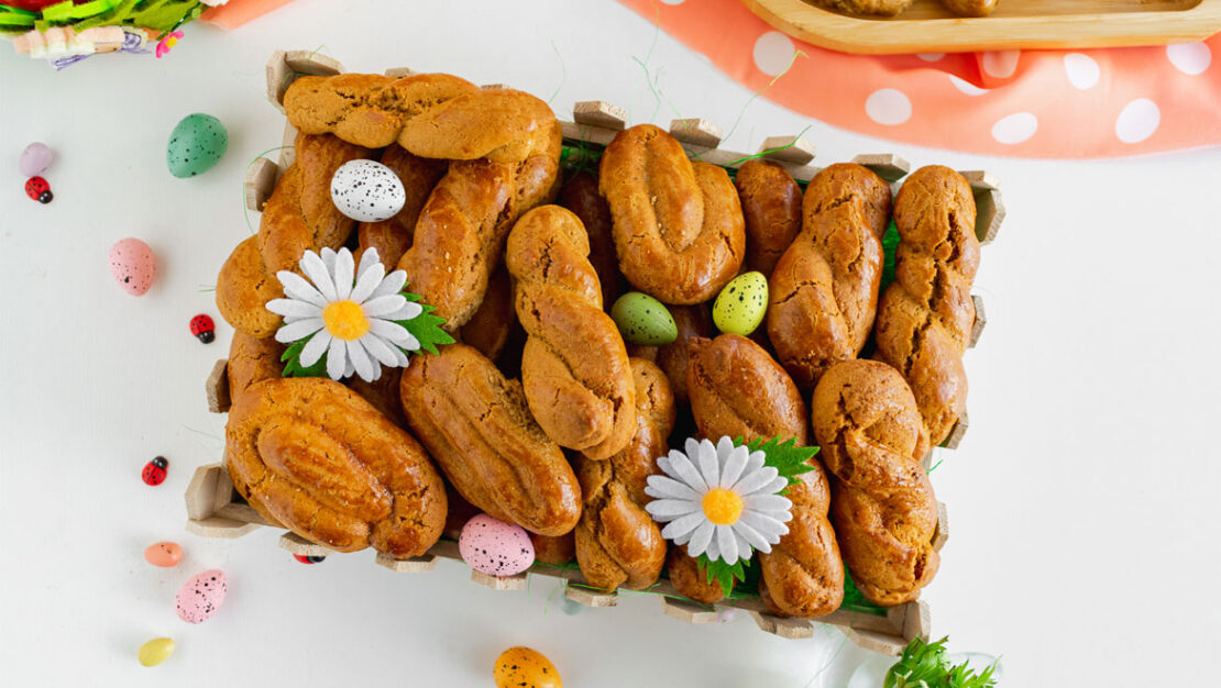 Χτυπάμε τους κρόκους με 1 κουταλιά της σούπας νερό, αλείφουμε τα κουλουράκια με πινέλο και ψήνουμε σε προθερμασμένο φούρνο στους 180°C για 20 λεπτά περίπου.