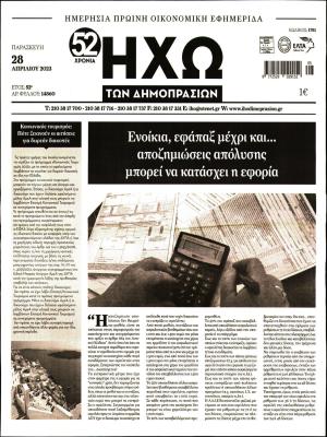 ΚεντρικήΚοινωνικάΠρωτοσέλιδα εφημερίδων by xristiana28 Απριλίου 202328 Απριλίου 20230474 Share00 28/4/2023 Πολιτικές ΑΠΟΓΕΥΜΑΤΙΝΗ ΑΠΟΨΗ ΑΥΓΗ ΔΗΜΟΚΡΑΤΙΑ ΕΛΕΥΘΕΡΗ ΩΡΑ ΕΛΕΥΘΕΡΟΣ ΤΥΠΟΣ ΕΣΤΙΑ ΚΑΘΗΜΕΡΙΝΗ ΚΑΡΦΙ Ο ΛΟΓΟΣ ΠΑΡΑΠΟΛΙΤΙΚΑ ΡΙΖΟΣΠΑΣΤΗΣ ΤΑ ΝΕΑ ΤΩΝ ΣΥΝΤΑΚΤΩΝ Οικονομικές ΕΦΗΜΕΡΙΣ ΔΗΜΟΠΡΑΣΙΩΝ ΚΑΙ ΠΛΕΙΣΤΗΡΙΑΣΜΩΝ ΗΧΩ ΔΗΜΟΠΡΑΣΙΩΝ ΚΕΦΑΛΑΙΟ ΜΕΤΟΧΟΣ ΝΑΥΤΕΜΠΟΡΙΚΗ Αθλητικές LIVE SPORT SPORTDAY SPORTIME ΠΡΩΤΑΘΛΗΤΗΣ ΤΟ ΣΤΟΙΧΗΜΑ ΦΩΣ ΤΩΝ ΣΠΟΡ ΩΡΑ ΓΙΑ ΣΠΟΡ Lifestyle ESPRESSO Θεσσαλονίκης ΤΥΠΟΣ ΘΕΣ/ΝΙΚΗΣ