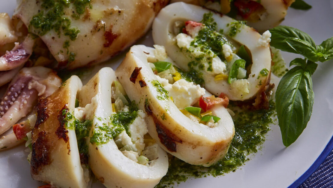 Γεμιστά καλαμάρια με φέτα και ντομάτα