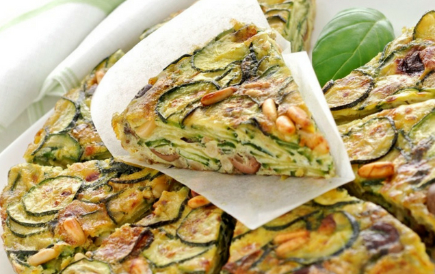 Ομελέτα φούρνου με κολοκυθάκια, απάκι και τυριά