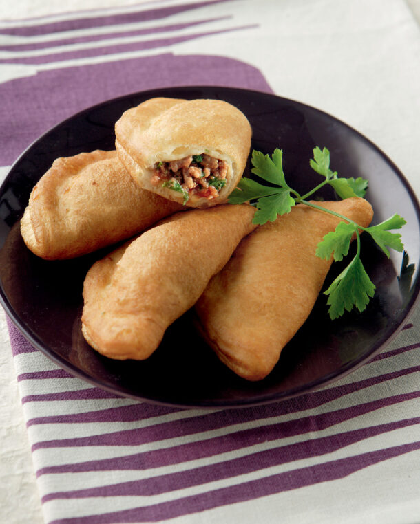 - Επαναλαμβάνουμε τη διαδικασία με τα υπόλοιπα κομμάτια ζύμης και τον υπόλοιπο κιμά.