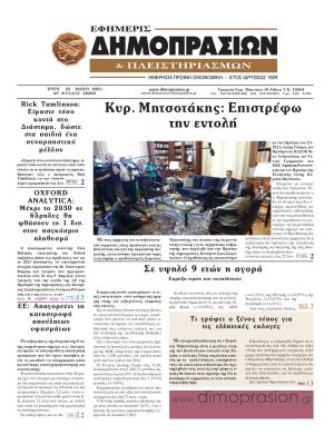 ΚεντρικήΚοινωνικάΠρωτοσέλιδα εφημερίδων by xristiana23 Μαΐου 202324 Μαΐου 20230362 Share00 23/5/2023 Πολιτικές ΑΠΟΓΕΥΜΑΤΙΝΗ ΑΥΓΗ ΔΗΜΟΚΡΑΤΙΑ ΕΛΕΥΘΕΡΗ ΩΡΑ ΕΛΕΥΘΕΡΟΣ ΤΥΠΟΣ ΕΣΤΙΑ ΚΑΘΗΜΕΡΙΝΗ Ο ΛΟΓΟΣ ΡΙΖΟΣΠΑΣΤΗΣ ΤΑ ΝΕΑ ΤΩΝ ΣΥΝΤΑΚΤΩΝ Οικονομικές ΕΦΗΜΕΡΙΣ ΔΗΜΟΠΡΑΣΙΩΝ ΚΑΙ ΠΛΕΙΣΤΗΡΙΑΣΜΩΝ ΗΧΩ ΔΗΜΟΠΡΑΣΙΩΝ ΝΑΥΤΕΜΠΟΡΙΚΗ Αθλητικές LIVE SPORT SPORTDAY SPORTIME ΠΡΟΓΝΩΣΠΟΡ ΠΡΩΤΑΘΛΗΤΗΣ ΦΩΣ ΤΩΝ ΣΠΟΡ ΩΡΑ ΓΙΑ ΣΠΟΡ Lifestyle ESPRESSO Θεσσαλονίκης ΤΥΠΟΣ ΘΕΣ/ΝΙΚΗΣ