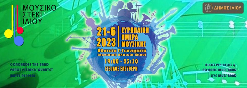 Για ακόμη μια χρονιά το Μουσικό Στέκι Ιλίου σε συνεργασία με την Διεύθυνση Πολιτισμού του Δήμου Ιλίου γιορτάζει την Ευρωπαϊκή Ημέρα Μουσικής δίνοντας ένα ηχηρό κάλεσμα στην πόλη την Τετάρτη 21/6/2023 από τις 19:00 μέχρι 23:30 στην Πλατεία Γεωργίου Γεννηματά (κεντρική πλατεία Ιλίου)