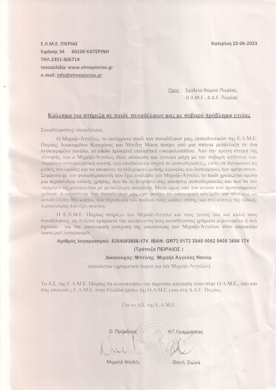 News ΑΜΕΑΚεντρικήΚάλεσμα για στήριξη παιδιού με σοβαρό πρόβλημα υγείας by xristiana25 Ιουνίου 202325 Ιουνίου 20230352 Share00 25/6/2023