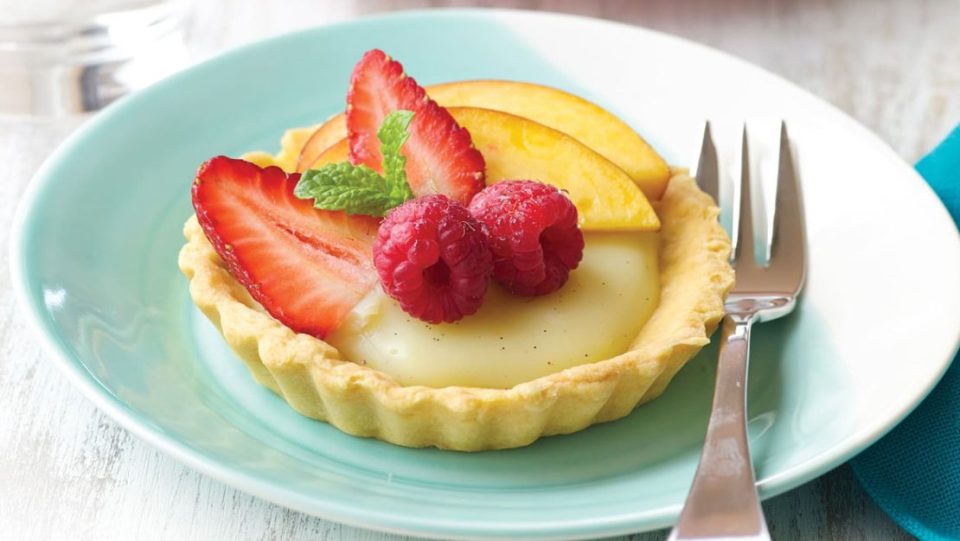 Τέλος, απλώνουμε πάνω στις τάρτες τη σαντιγί και γαρνίρουμε με τα φρέσκα φρούτα εποχής.