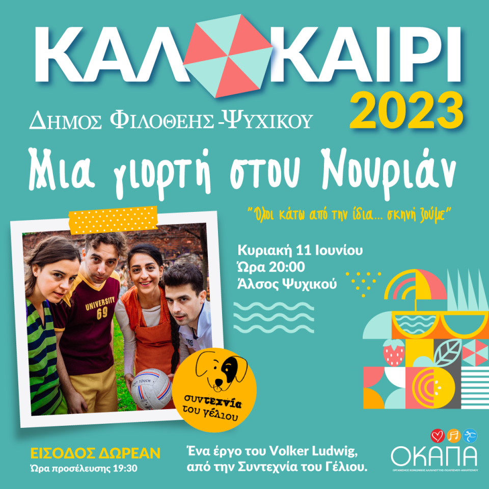 Ο Δήμος Φιλοθέης Ψυχικού παρουσιάζει την ανατρεπτική παιδική κωμωδία του Volker Ludwig για τις προκαταλήψεις, τις σχέσεις μεταξύ Ελλήνων και μεταναστών και την πολιτισμική συμφιλίωση: “Μια γιορτή στου Νουριάν” την Κυριακή 11 Ιουνίου, και ώρα 20:00, στο Άλσος Ψυχικού.