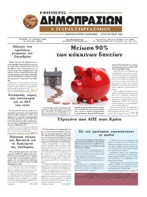 ΕΦΗΜΕΡΙΣ ΔΗΜΟΠΡΑΣΙΩΝ ΚΑΙ ΠΛΕΙΣΤΗΡΙΑΣΜΩΝ