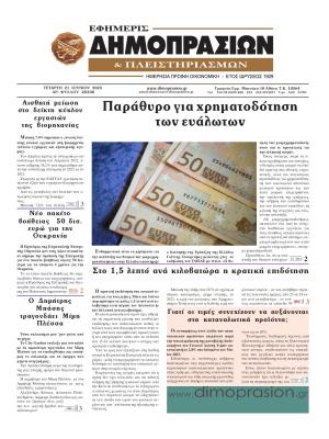 ΕΦΗΜΕΡΙΣ ΔΗΜΟΠΡΑΣΙΩΝ ΚΑΙ ΠΛΕΙΣΤΗΡΙΑΣΜΩΝ