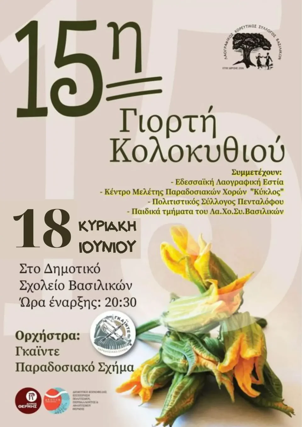15η Γιορτή Κολοκυθιού, η εκδήλωση του Λαογραφικού Χορευτικού Συλλόγου Βασιλικών που προωθεί ένα τοπικό προϊόν και προσπαθεί να το κάνει ακόμα πιο αναγνωρίσιμο στην αγορά.