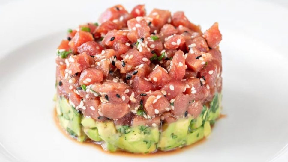 Σερβίρουμε αμέσως το Ταρτάρ Τόνου με Αβοκάντο και το συνοδεύουμε με ένα κρύο ροζέ κρασί.