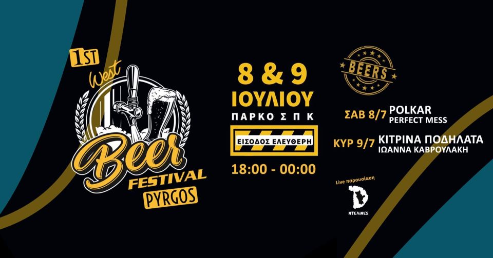 Με έντονο ενδιαφέρον αναμένεται το 1 ο WEST BEER FESTIVAL, που θα διεξαχθεί στις 8 και 9 Ιουλίου στο Πάρκο ΣΠΚ Πύργου.