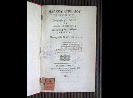 - «Μάρκου Αυρηλίου Εγκώμιον» του γάλλου ακαδημαϊκού Αντουάν-Λεονάρ Τομά (1732-1785).