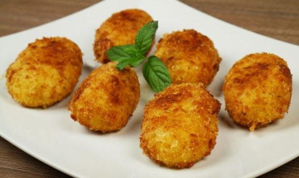 - Μόλις κάψει τηγανίζετε τις κροκέτες σας πρώτα από τη μια πλευρά και μόλις πάρουν χρώμα τις γυρίζετε, με τη βοήθεια 2 κουταλιών, και από την άλλη και τις αφήνετε μέχρι να πάρουν χρώμα. Τις μεταφέρετε σε πιατέλα στρωμένη με απορροφητικό χαρτί και τις σερβίρετε ζεστές