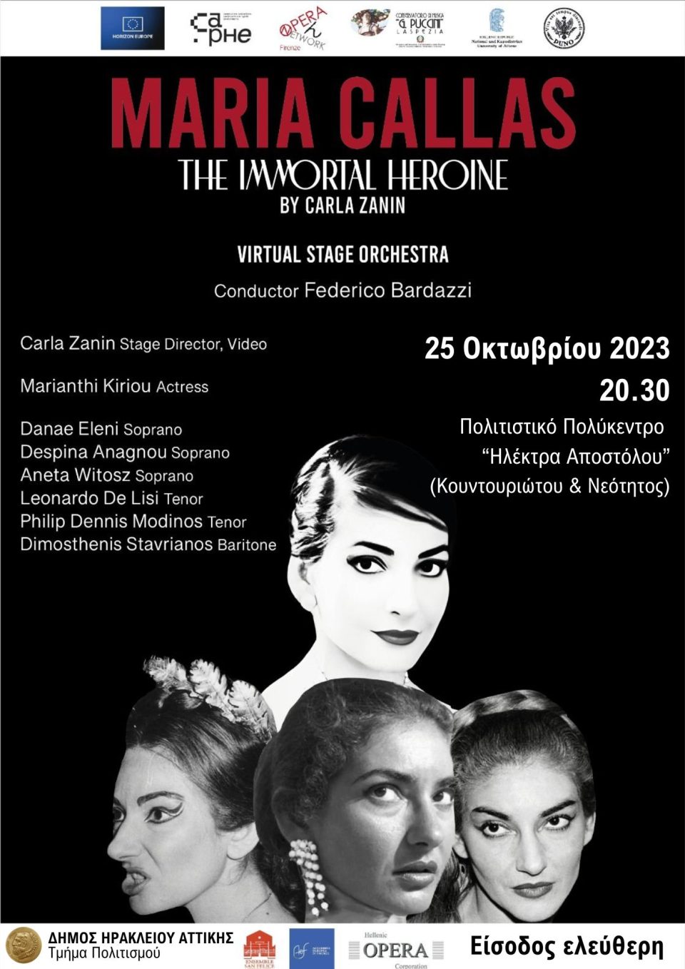 Μια μοναδική, μουσικοθεατρική παράσταση για τη ζωή και το έργο της σπουδαίας Μαρίας Κάλλας φέρνει στο Πολιτιστικό Πολύκεντρο «Ηλέκτρα Αποστόλου» ο Δήμος Ηρακλείου Αττικής, μέσα από Τμήμα Πολιτισμού, για όλους τους φίλους της μουσικής, της όπερας και τους θαυμαστές της αξεπέραστης καλλιτέχνιδας.