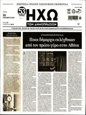 ΚεντρικήΚοινωνικάΠρωτοσέλιδα εφημερίδων by xristiana10 Οκτωβρίου 202311 Οκτωβρίου 20230509 Share00 10/10/2023 Πολιτικές ΑΠΟΓΕΥΜΑΤΙΝΗ ΑΥΓΗ ΔΗΜΟΚΡΑΤΙΑ ΕΛΕΥΘΕΡΗ ΩΡΑ ΕΛΕΥΘΕΡΟΣ ΤΥΠΟΣ ΕΣΤΙΑ ΚΑΘΗΜΕΡΙΝΗ Ο ΛΟΓΟΣ ΡΙΖΟΣΠΑΣΤΗΣ ΤΑ ΝΕΑ ΤΩΝ ΣΥΝΤΑΚΤΩΝ Οικονομικές ΕΦΗΜΕΡΙΣ ΔΗΜΟΠΡΑΣΙΩΝ ΚΑΙ ΠΛΕΙΣΤΗΡΙΑΣΜΩΝ ΗΧΩ ΔΗΜΟΠΡΑΣΙΩΝ ΝΑΥΤΕΜΠΟΡΙΚΗ Αθλητικές LIVE SPORT SPORTDAY SPORTIME ΠΡΟΓΝΩΣΠΟΡ ΠΡΩΤΑΘΛΗΤΗΣ ΦΩΣ ΤΩΝ ΣΠΟΡ ΩΡΑ ΓΙΑ ΣΠΟΡ Lifestyle ESPRESSO Θεσσαλονίκης ΤΥΠΟΣ ΘΕΣ/ΝΙΚΗΣ