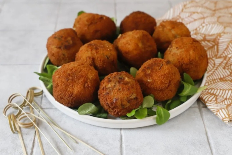 Πλάθουμε τα κεφτεδάκια, τα βουτάμε σε λίγο αλεύρι, μετά στο χτυπημένο αυγό και τέλος στην τριμμένη φρυγανιά. Και τέλος τα τηγανίζουμε σε άφθονο σπορέλαιο στους 170°C και στραγγίζουμε σε απορροφητικό χαρτί.