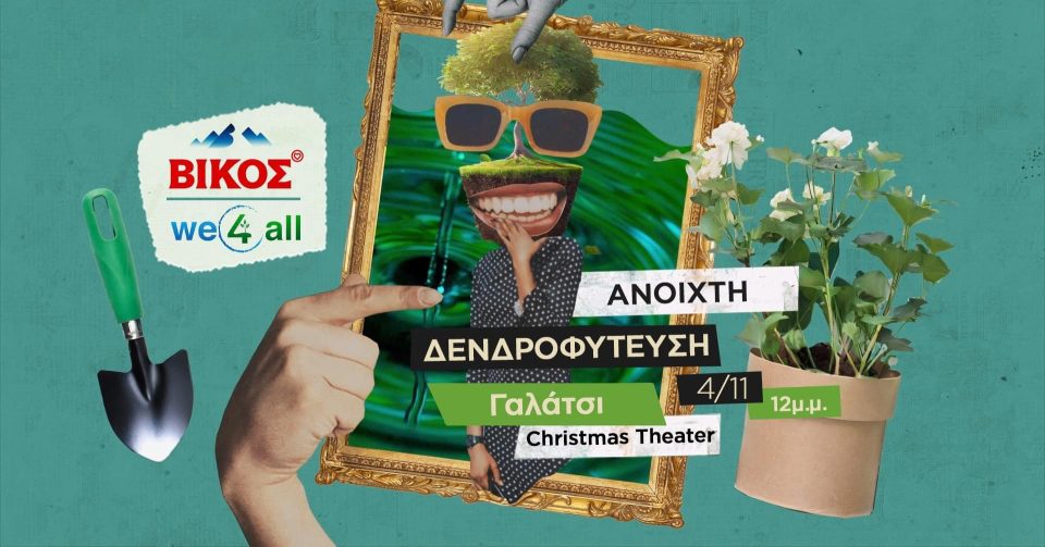 Ο Δήμος Γαλατσίου, η WE4All και η ΒΙΚΟΣ Φυσικό Μεταλλικό Νερό σας καλούν να συμμετάσχετε στην 4η Πανελλήνια Εθελοντική Φύτευση, στο Γαλάτσι, το Σάββατο 4 Νοεμβρίου 2023, στις 12μ.μ., στο Κλειστό Ολυμπιακό Γυμνασήριο Γαλατσίου (έξω από το Christmas Theater).