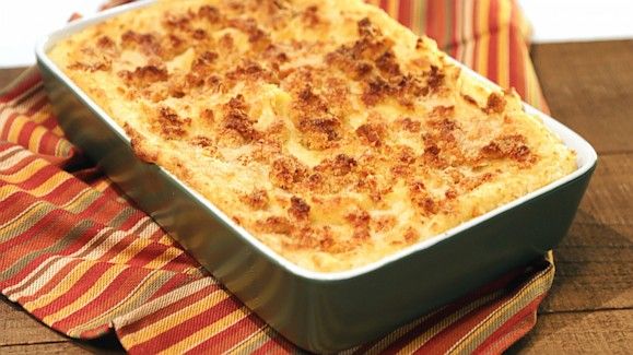 - Καθαρίζετε τις πατάτες σας και τις βράζετε σε μπόλικο κοχλαστό νερό μέχρι να μαλακώσουν καλά και τις στραγγίζετε. Προθερμαίνετε το φούρνο στους 180 βαθμούς και λαδώνετε ελαφρώς ένα στρογγυλό ταψάκι με διάμετρο βάσης 30-32 εκ. ή ορθογώνιο αντίστοιχης χωρητικότητας.