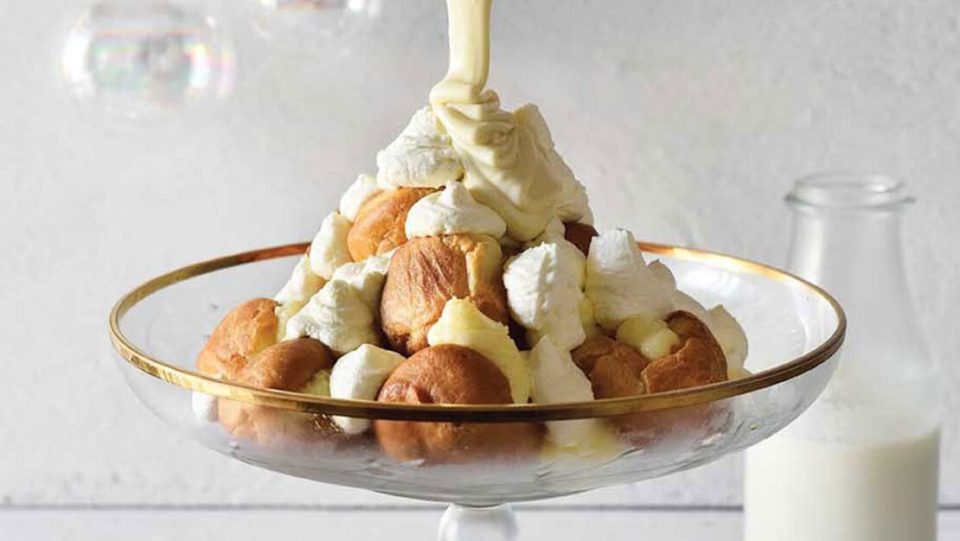 Βάζουμε την κρέμα λεμονιού σ’ ένα κορνέ. Μ’ ένα μαχαίρι τρυπάμε τα σου. Τα γεμίζουμε με την κρέμα λεμονιού. Τα μεταφέρουμε στην πιατέλα που θα τα σερβίρουμε. Διακοσμούμε με τη σαντιγί και σερβίρουμε με τη σάλτσα σοκολάτας.
