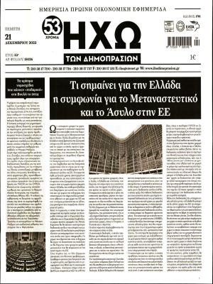 ΚεντρικήΚοινωνικάΠρωτοσέλιδα εφημερίδων by xristiana21 Δεκεμβρίου 202321 Δεκεμβρίου 20230317 Share00 21/12/2023 Πολιτικές ΑΠΟΓΕΥΜΑΤΙΝΗ ΑΥΓΗ ΔΗΜΟΚΡΑΤΙΑ ΕΛΕΥΘΕΡΗ ΩΡΑ ΕΛΕΥΘΕΡΟΣ ΤΥΠΟΣ ΕΣΤΙΑ ΚΑΘΗΜΕΡΙΝΗ Ο ΛΟΓΟΣ ΡΙΖΟΣΠΑΣΤΗΣ ΤΑ ΝΕΑ ΤΟ ΠΟΝΤΙΚΙ ΤΩΝ ΣΥΝΤΑΚΤΩΝ Οικονομικές ΕΦΗΜΕΡΙΣ ΔΗΜΟΠΡΑΣΙΩΝ ΚΑΙ ΠΛΕΙΣΤΗΡΙΑΣΜΩΝ ΗΧΩ ΔΗΜΟΠΡΑΣΙΩΝ ΝΑΥΤΕΜΠΟΡΙΚΗ Αθλητικές LIVE SPORT SPORTDAY ΠΡΩΤΑΘΛΗΤΗΣ ΦΩΣ ΤΩΝ ΣΠΟΡ ΩΡΑ ΓΙΑ ΣΠΟΡ Lifestyle ESPRESSO Free press ATHENS VOICE Θεσσαλονίκης ΤΥΠΟΣ ΘΕΣ/ΝΙΚΗΣ