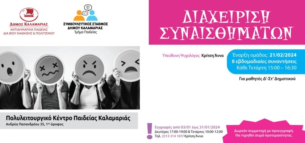 ΚεντρικήΚοινωνικάΈναρξη Εγγραφών για την συμμετοχή στην ομάδα “Διαχείριση συναισθημάτων by xristiana11 Ιανουαρίου 202411 Ιανουαρίου 20240327 Share00 11/1/2024