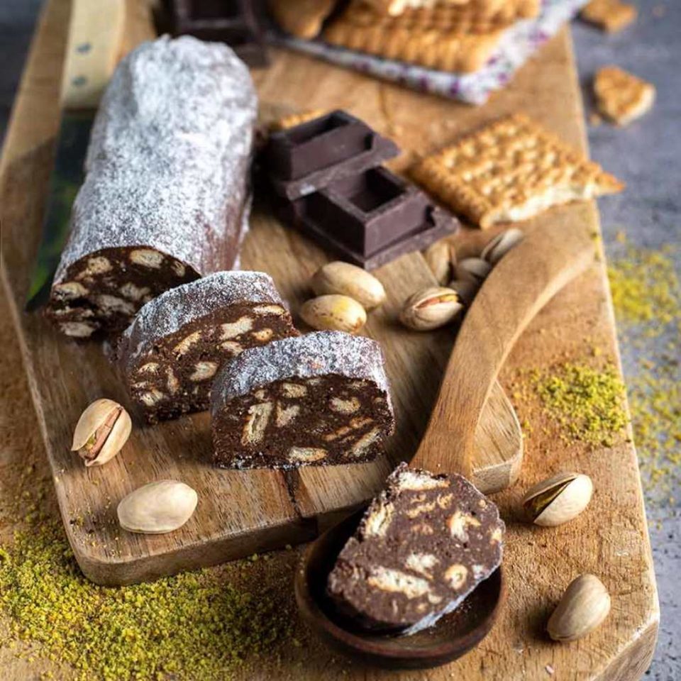 Βάζουμε τον κορμό στην κατάψυξη για λίγες ώρες πριν το κόψουμε σε φέτες. Πριν το σερβίρουμε το αφήνουμε να ξεκουραστεί για 10-15 λεπτά σε θερμοκρασία δωματίου.