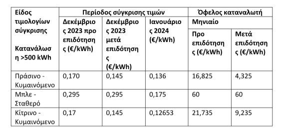 Τιμές πράσινου τιμολογίου για Ιανουάριο 2024