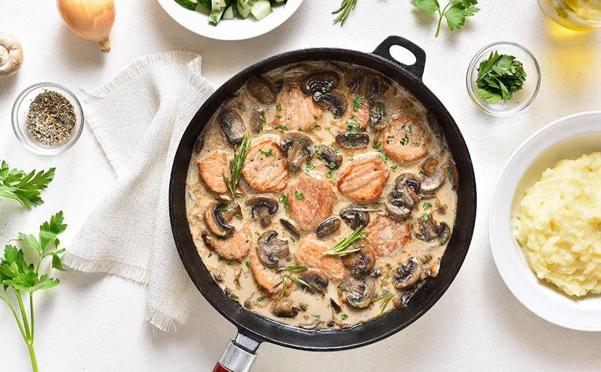 Ανακατέψτε την κρέμα γάλακτος και τη μουστάρδα μέχρι να ενωθούν και σιγοβράστε μέχρι η σάλτσα να είναι αρκετά πηχτή, περίπου 4 λεπτά ακόμα. Δοκιμάστε και προσθέστε αλάτι και πιπέρι.