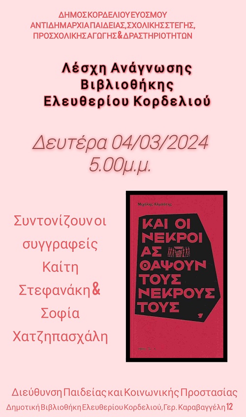 ΚεντρικήΚοινωνικάΛΕΣΧΗ ΑΝΑΓΝΩΣΗΣ Το Βιβλίο με τίτλο « ΚΑΙ ΟΙ ΝΕΚΡΟΙ ΑΣ ΘΑΨΟΥΝ ΤΟΥΣ ΝΕΚΡΟΥΣ ΤΟΥΣ by xristiana14 Φεβρουαρίου 202414 Φεβρουαρίου 20240490 Share00 14/2/2024